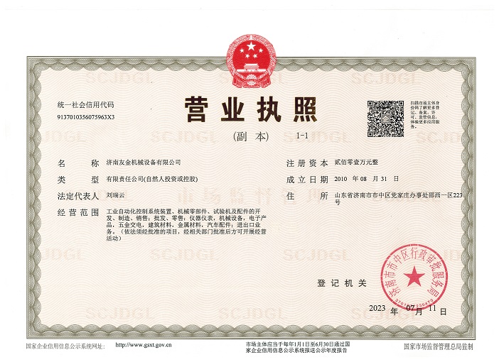 濟南友金機械設備有限公司 地址:濟南市市中區黨家辦事處邵西一區223號  電話:0531-85895266 傳真:0531-87926347